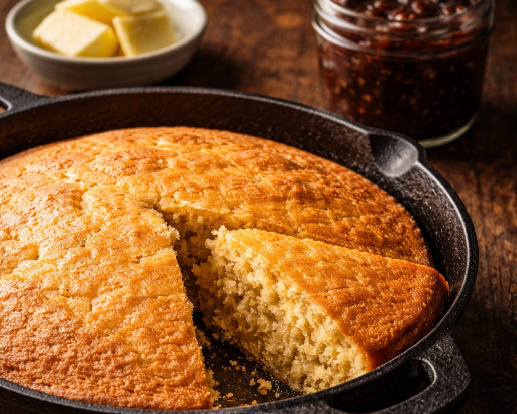 Kein BBQ ohne Cornbread. Kein Chili ohne Cornbread. Kein langer Abend am Lagerfeuer, keine Familienfeier, keine Mahlzeit, die ernsthaft ernst genommen wird – ohne dieses schlichte, goldgelbe, im Gusseisen gebackene Maisbrot, das nach nichts Besonderem aussieht und nach allem schmeckt, was Heimat bedeutet.
